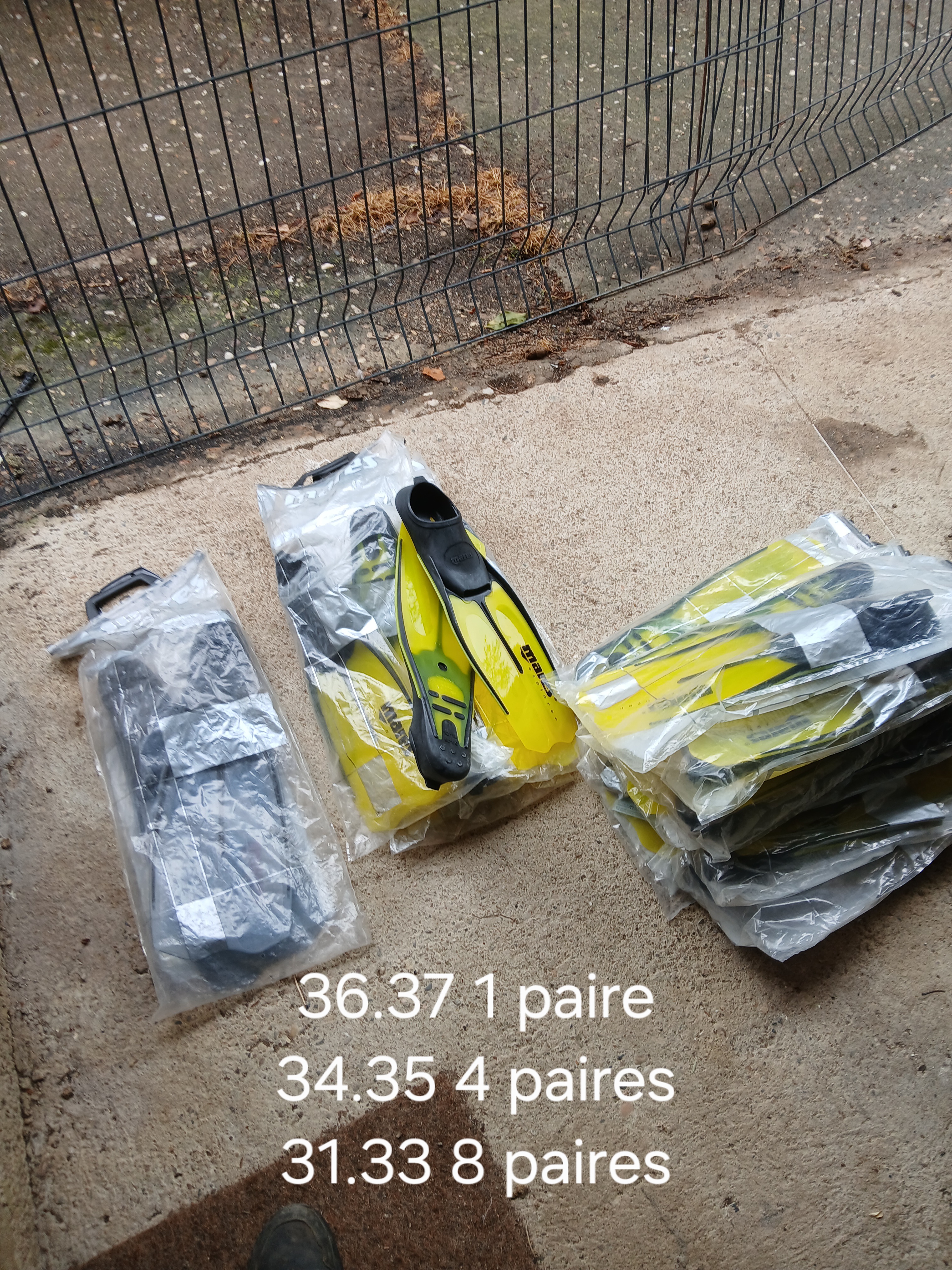 Vend le lot de palmes Mares , 13 paires au total.